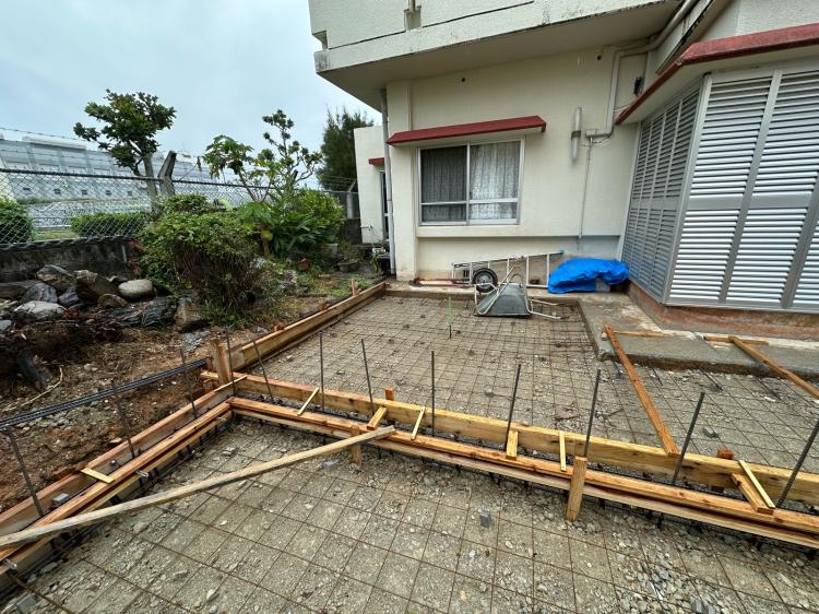 型枠を組んで配筋し、土間を補強するため