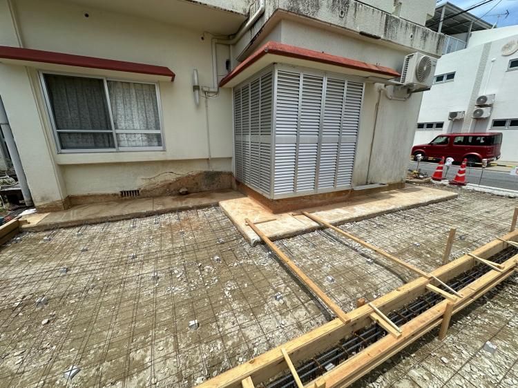 また、既存の犬走り部分と新しく打設する土間コンクリートを