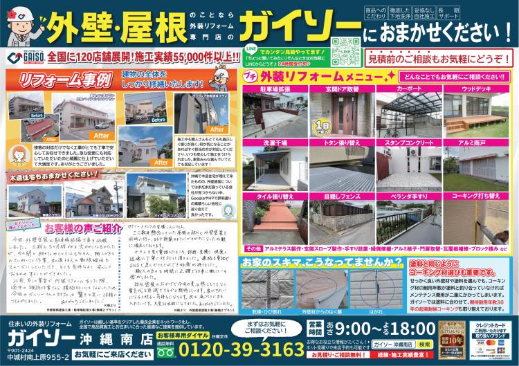 ガイソー沖縄南店では地元沖縄の住まいを守るため