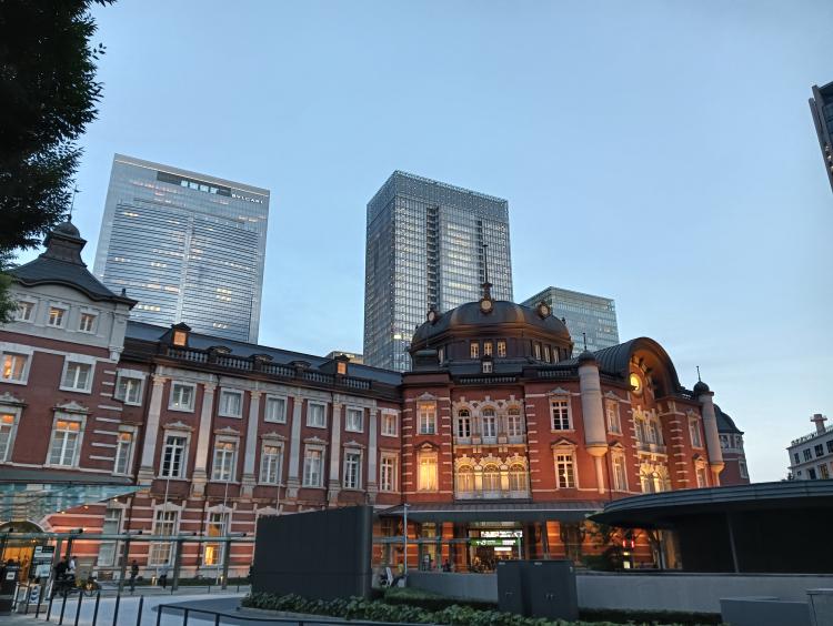 会場が東京駅近くだったので、研修後は夕暮れ時の東京駅を眺めながら夕涼みをしました。