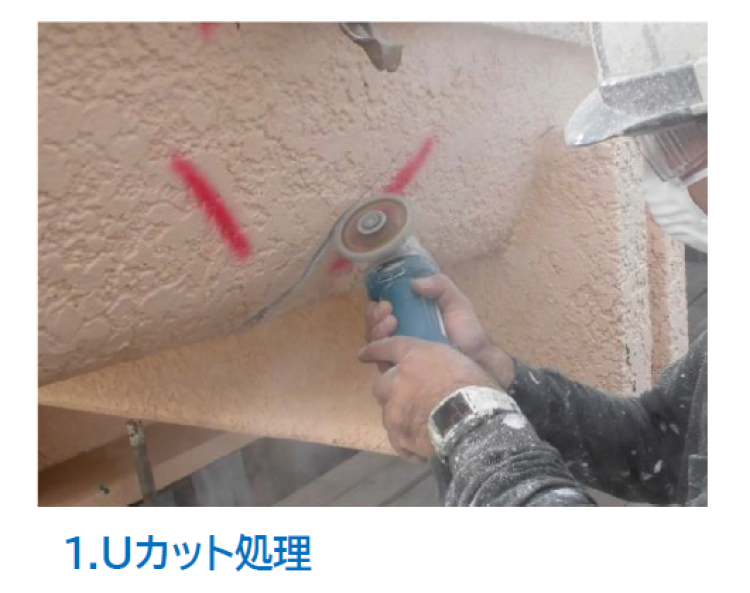 Uカット処理とは、ひび割れに沿ってU型に溝をつくる作業です。