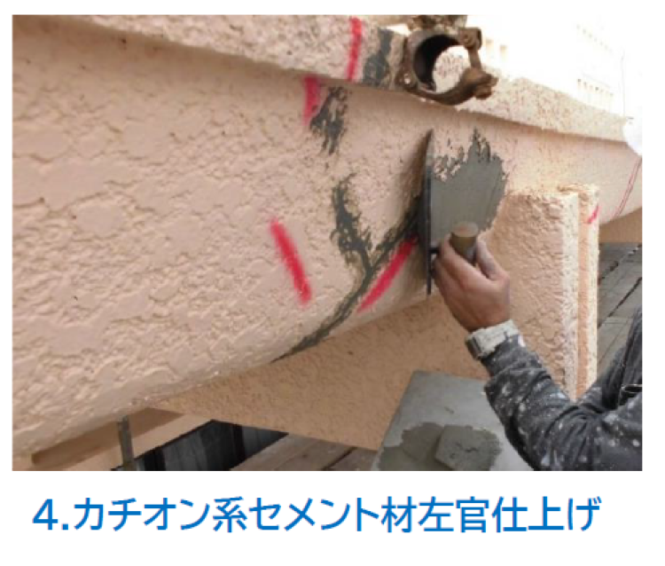 ひび割れを補修したあとは、まわりと馴染むように左官仕上げを行います。
