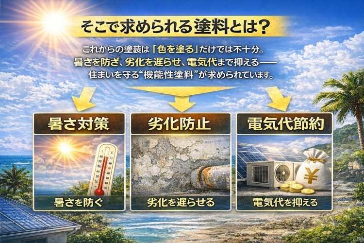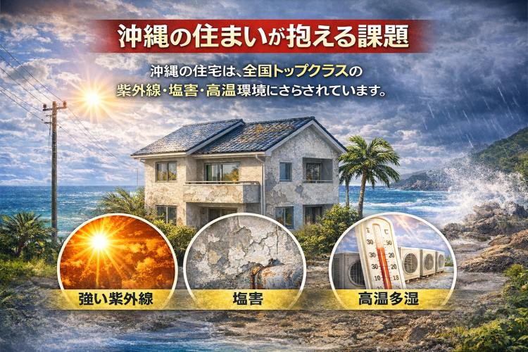 強烈な紫外線、塩害、高温多湿——これらは外壁や屋根の劣化を早めるだけでなく、室内温度の上昇や電気代の増加にも直結します。