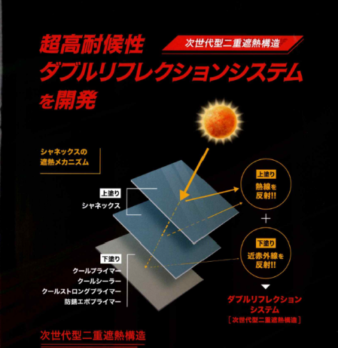 上塗りと下塗りの両方で熱線を反射します。