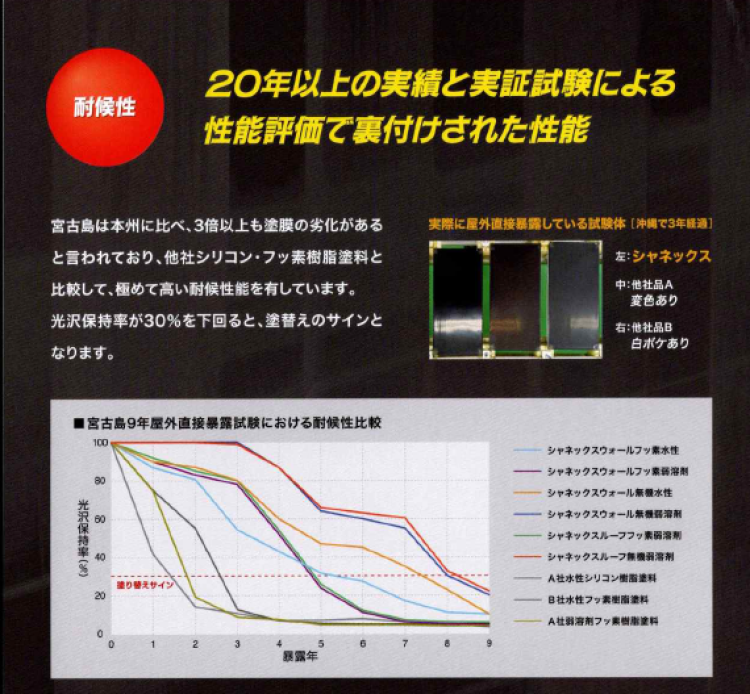 ・他塗料を上回る耐候性